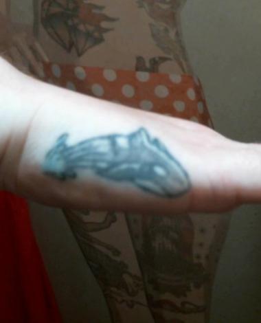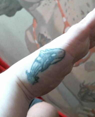 "I had my name there first of all. It looked terrible, so I went to a professional shop to get it covered over. I've always liked whales and dolphins."